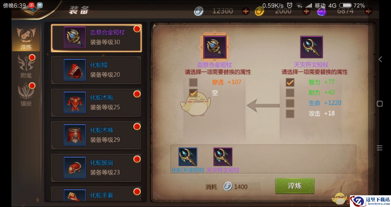 装备淬炼就是将一件装备的随机属性淬炼到另一件装备上面。