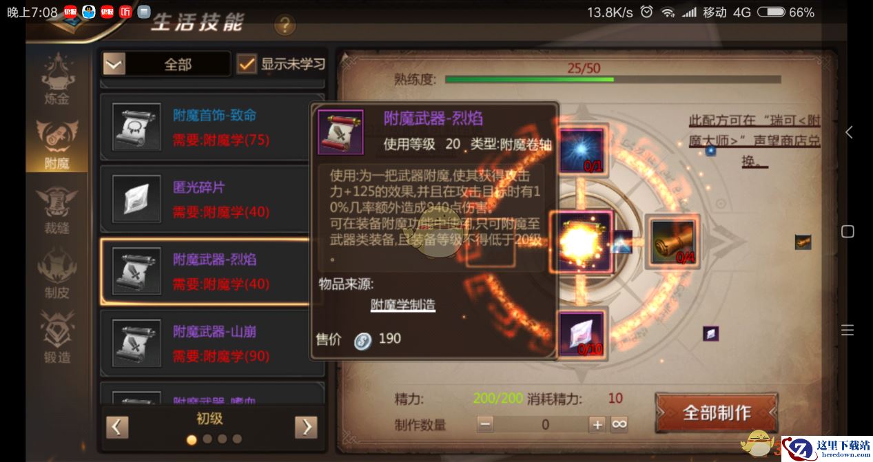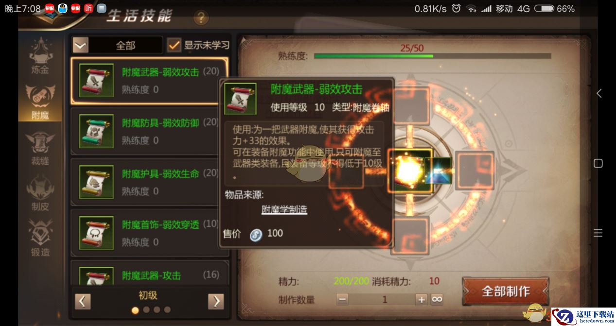 附魔也是生活技能,也是一次性消耗品,好的附魔卷轴相当的贵。我就拿两种卷轴举个例子:弱效攻击卷轴和烈焰卷轴