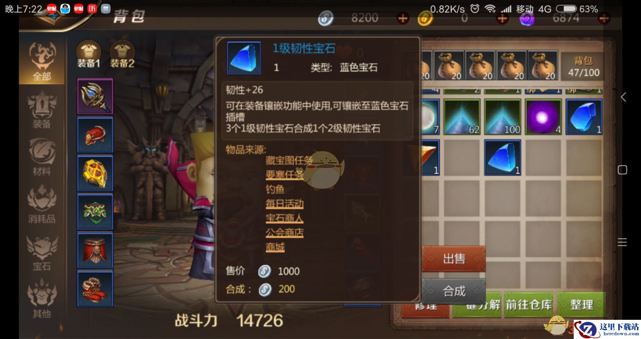 物品来源:藏宝图任务、要塞任务、钓鱼、每日活动、公会商店、宝石商人、商城