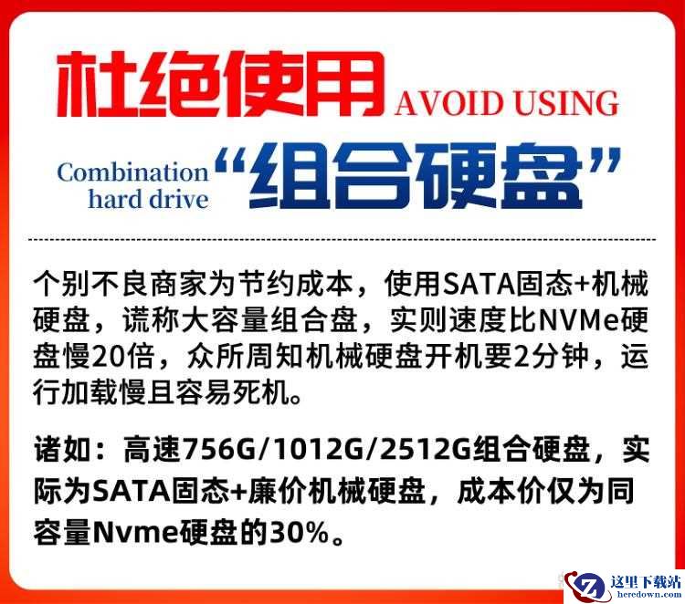 除了固态硬盘、机械硬盘,在低价整机中还出现了一个新的名词——“组合硬盘”。