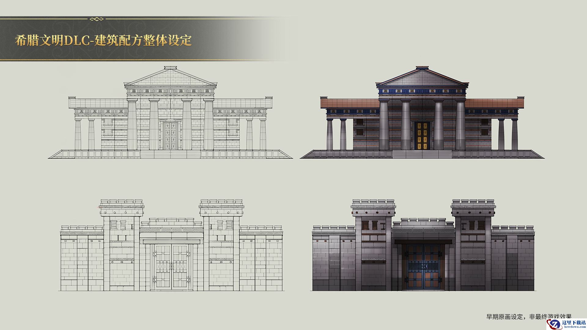 与此同时,希腊文明DLC再曝新内容,极具希腊特色的建筑配方首次对外展示原画设定。