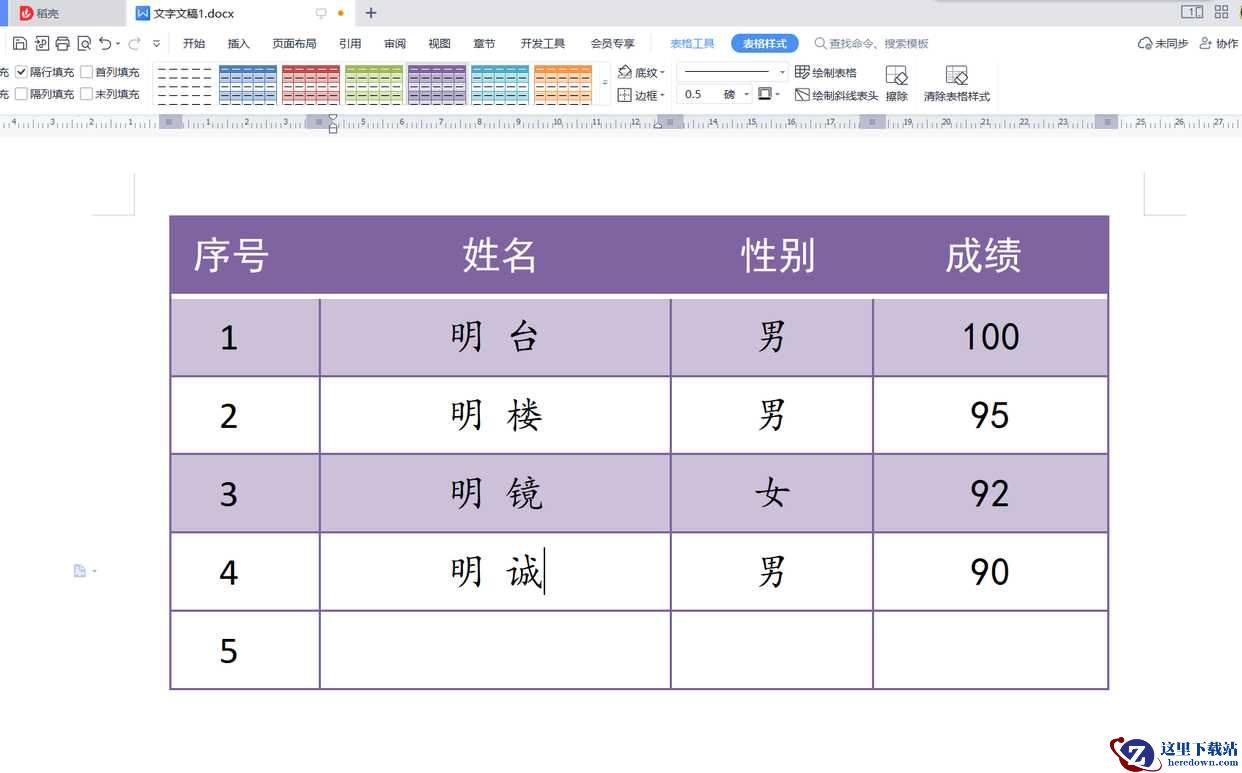 今天跟大家分享如何在wps文字文档的表格中批量插入多行。如下图所示,wps文字文档中有一张表格,表格连标题行一共有5行,接下来我们想实现的效果是在第5行下面快速批量插入10个新行。