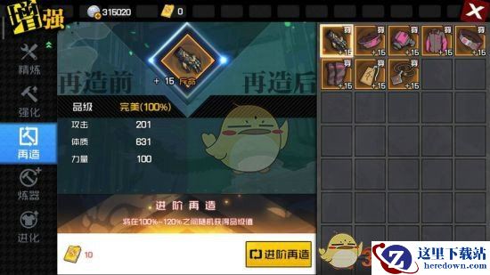 装备再造,一项较为注重小伙伴运气的培养机制,通过耗费指定数量的再造许可证或进阶再造许可证可改变装备的品级,但不排除失败的概率,即品级没有做出任何的增加。一般来说再造许可证适用大部分装备,会随机改造装备属性。进阶再造许可证可以在品级100%的基础上再次提升,仅使用品质不低于100%的50级绝世装备。