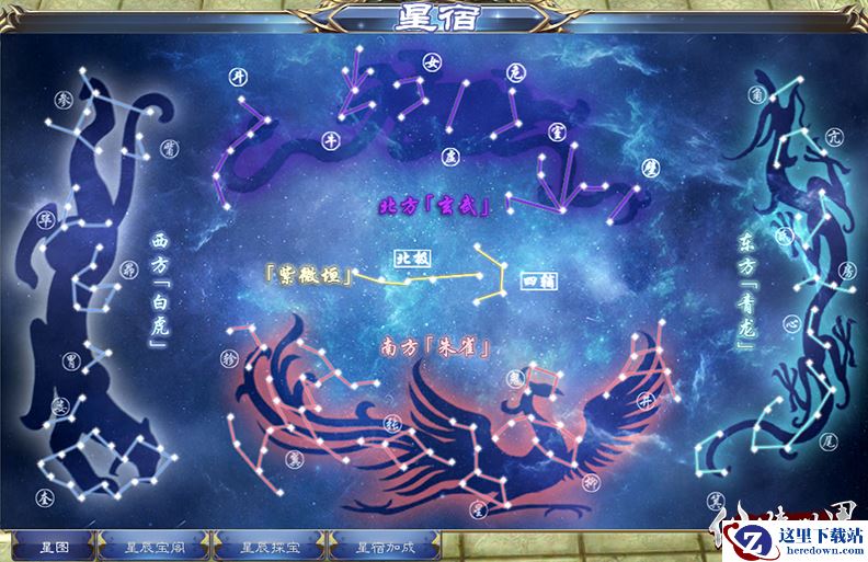 在“星图”中,有着流光溢彩的星空图鉴,该图鉴是由二十八颗星宿与另外两颗特殊星宿组合而成,每一颗星宿都有着专属于自己的特殊属性。那么,如何获取星宿属性呢?其实很简单,仙友只需要通过完成星星点灯任务、击杀世界BOSS“灵晔玄寅”、探宝等方式来获取到星位石与大星石这两件宝物。将宝物分别镶嵌至星宿对应的孔位上,就可以点亮该孔位,并获得星石所附带的属性加持了。当星宿孔位全部被点亮之后,摇曳的星光将汇聚于这颗星宿,使其璀璨生辉。与此同时,专属于该星宿的特殊属性也会汇聚至仙友体内,为仙友的实力添砖加瓦!