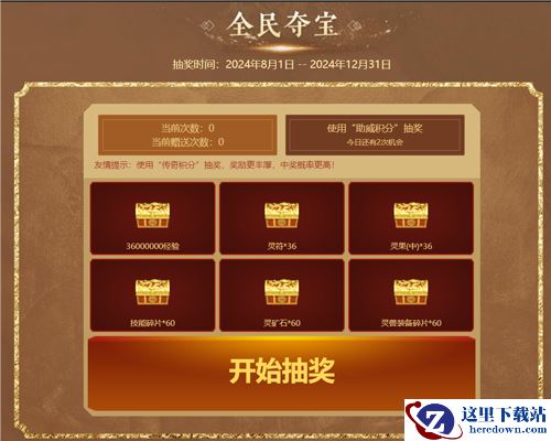 “传奇积分”和“助威积分”还可用于“全民夺宝”抽奖活动,使用“传奇积分”夺宝奖励更丰厚!