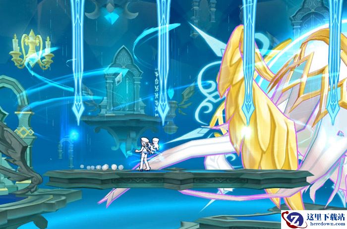 地狱模式下玩家仅有1次复活机会,共分为2个阶段,第1阶段登场的是神之使者,当他们的血量降低到一定程度时,将进入第2阶段。第2阶段“主天使”出场,她可以从顶部生成多把投影剑坠落攻击,剑与剑之间会有很小的缝隙空间,玩家们可以在此躲避一些伤害噢!
