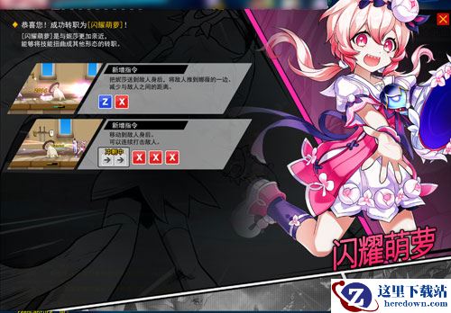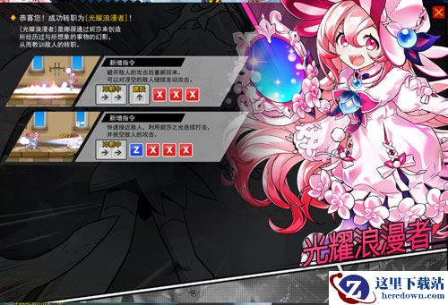 转职后的闪耀萌萝外形活力十足,晋级时装搭配的花蕾蓬蓬裙和发夹,实在可爱无比。在技能上开启了新的连击指令,并且“咕噜咕噜”和“银河”作为其主要技能不仅有着炫丽特效效果,还有强大的攻击力,在感受震撼的视觉效果的同时,感受激爽畅快的格斗体验。