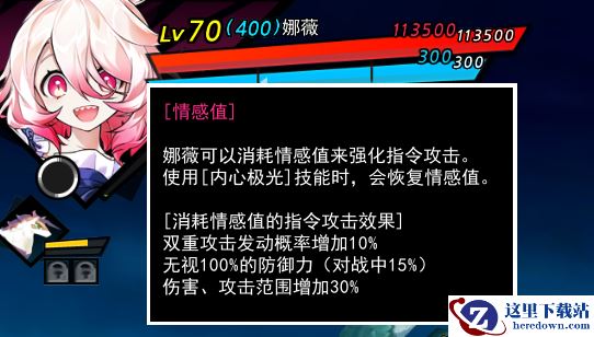 除此之外,娜薇独有的固有系统“觉醒”和“情感值”,当觉醒值填满时会自动觉醒,拥有觉醒珠时,按下ctrl键可使用技能,觉醒技能命中时,会给敌人造成踉跄状态。情感值是强化指令攻击效果,可通过觉醒或指定技能增加情感数值。