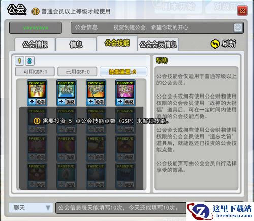 “公会技能”适用于普通等级以上的公会成员,它可以给提供给每一个公会成员专属被动技能。本次改编将12个公会技能数量增加至16个,并添加第4列,对以往的部分技能合并或变更,并新增很多强力的新技能,及技能页扩张,让公会成员有更多选择。