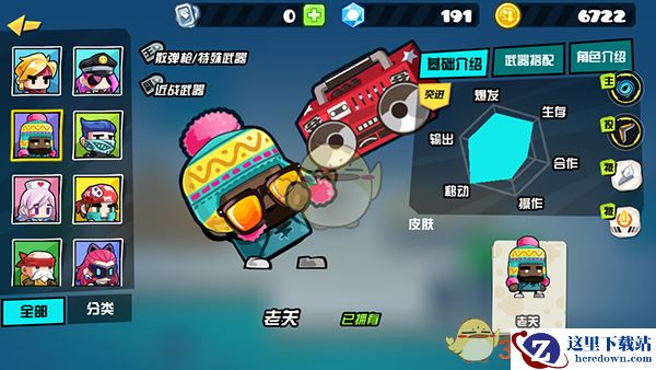 战斧可以说是最热的近战武器,虽然攻击中等,但是一个以自身为圆周的伤害圈可不是盖的,老关可以利用自己高速的特点配合回旋镖以蛇皮走位戏耍对手,就算不正面攻击对方也有很大几率完成反杀,而且面对多人的围堵式攻击,更可以让输出最大化。(反杀或者作出最后的贡献)
