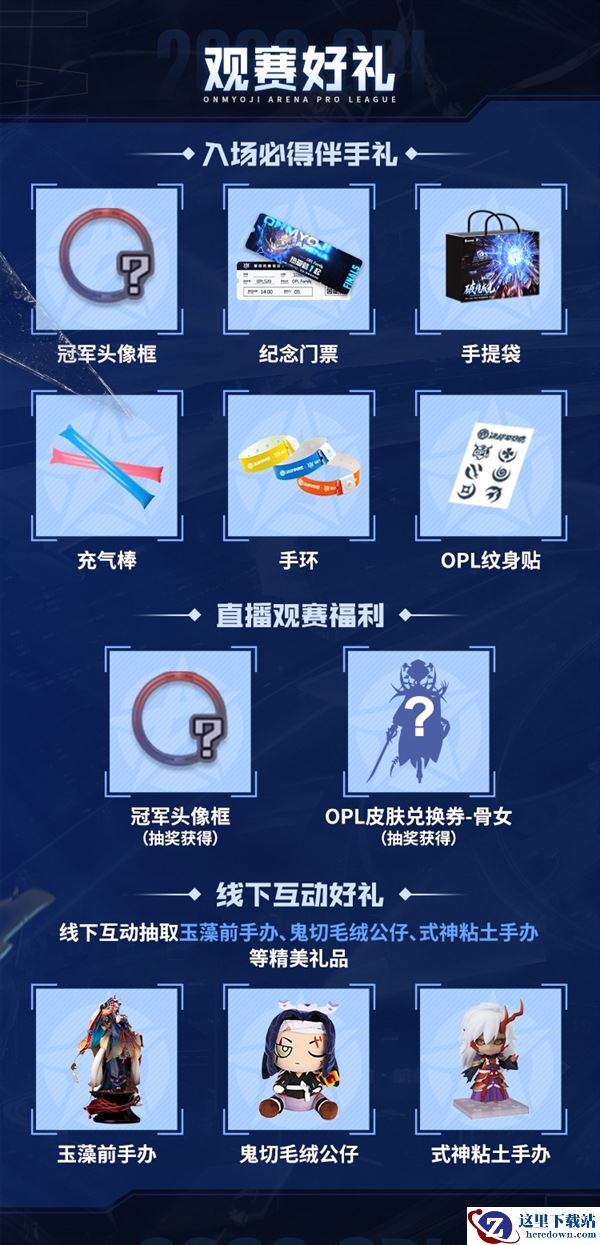 前往线下观赛的阴阳师入场时必得伴手礼包一份,内含冠军头像框、纪念门票、手提袋、充气棒、手环与OPL纹身贴。