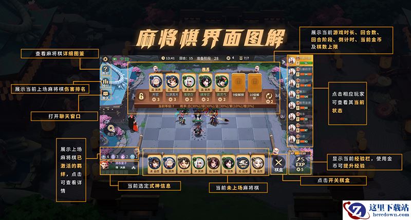在准备阶段,每回合开始时棋盒会自动刷新棋子,大人们可以购买心仪的麻将棋加入手牌,并选择出战的式神放置在战场上,搭配合理的式神阵容并和其他玩家的式神进行对抗。