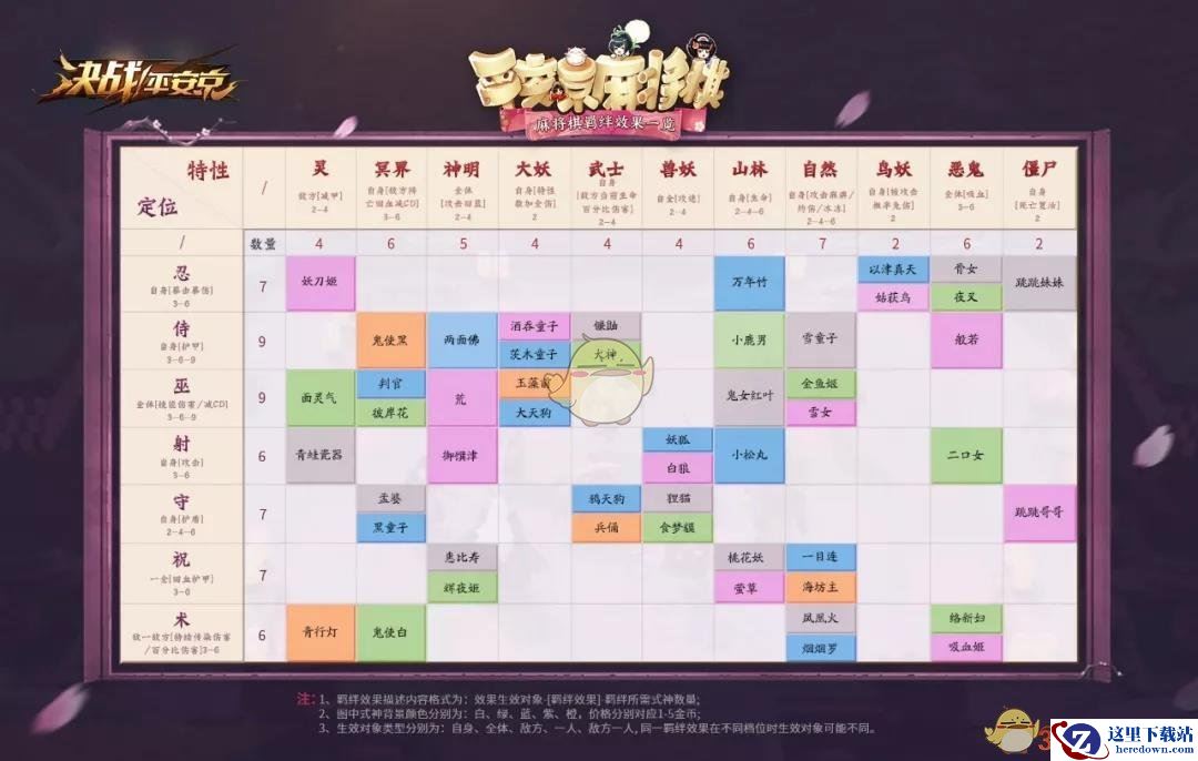 特性:灵、冥界、神明、大妖、武士、兽妖、山林、自然、鸟妖、恶鬼、僵尸、达摩、呱太。