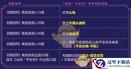 2.阴阳师中绑定角色达成以下要求的阴阳师大人,可在决战平安京内获得相应的奖励,以下各活动互不相斥,达成条件即可领取。