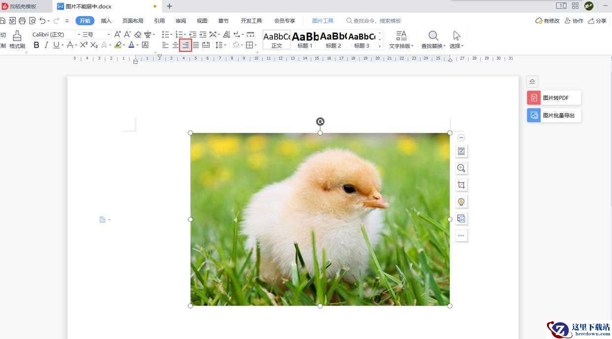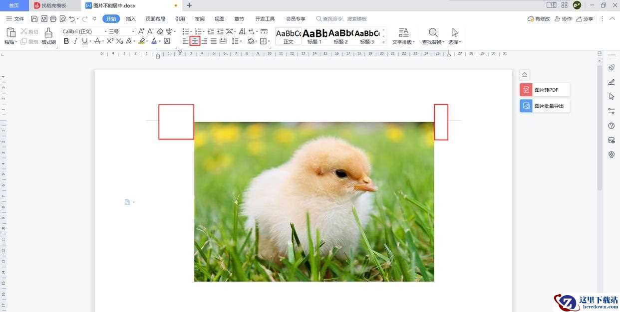 大家好,这篇文章跟大家分享一个在编辑wps文字文档时常见的问题。我们将图1文档中原本【右对齐】的图片设置【居中对齐】后,图片还是没有居中,参见图2。从图2中明显可以看到,图片左边的留白要比右边大。