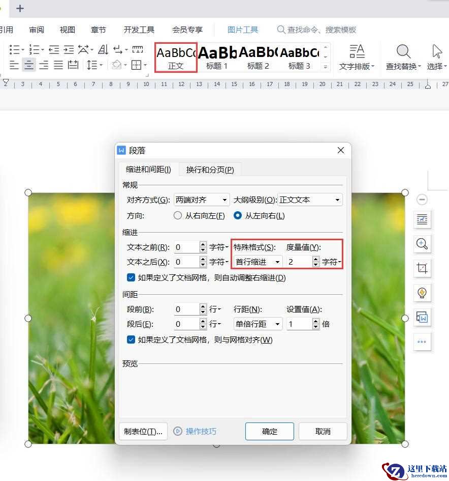 出现这样的问题,原因在于图片应用的【正文】样式的段落格式中默认设置了【首行缩进】【2字符】的特殊格式。