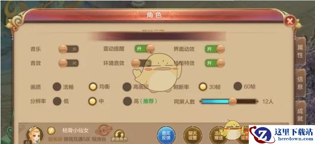 1、点击左上角的头像,侧边栏切换到设置,有调节画质、特效各种功能。其他设置中还能调节玩家血条名字显示与否。