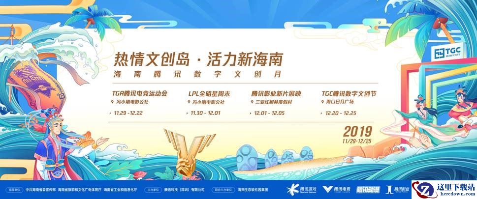 2019年11月29日-12月25日,首届“2019海南腾讯数字文创月”举办,活动由中共海南省委宣传部、海南省旅游和文化广电体育厅、海南省工业和信息化厅作为指导单位,腾讯作为主办方,海南生态软件园集团作为联合主办单位,共同发起。数字文创月由TGA腾讯电竞运动会冬季总决赛、LPL全明星周末、第二届海南岛国际电影节腾讯影业影片展映、TGC腾讯数字文创节四大主题活动组成,充分整合腾讯旗下游戏、电竞、动漫、影业及音乐等多业务优质内容和生态能力,联动海南当地特色及资源,共同打造海南特色的“年轻、阳光、活力”文化标签。