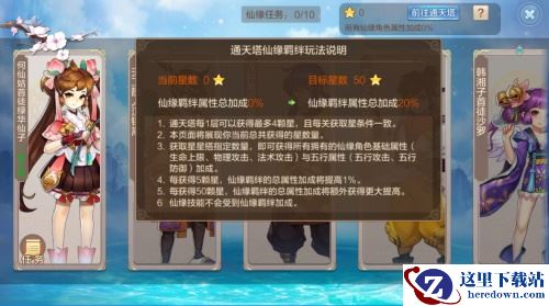 羁绊等级分为多个等级,属性加成为百分比加成。玩家在通天塔中每获得5颗星,仙缘羁绊的总属性加成将提高1%;玩家每获得50颗星,仙缘羁绊的总属性加成将额外获得更大提高。