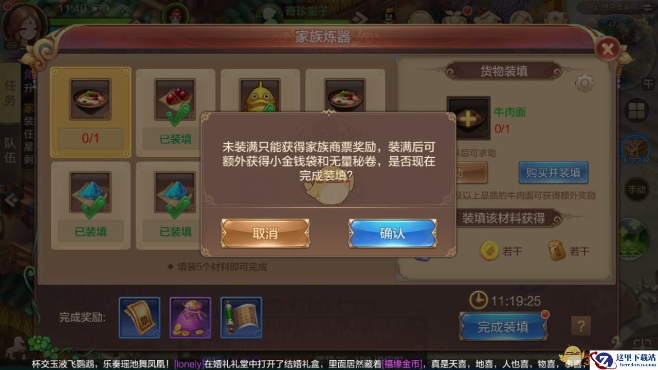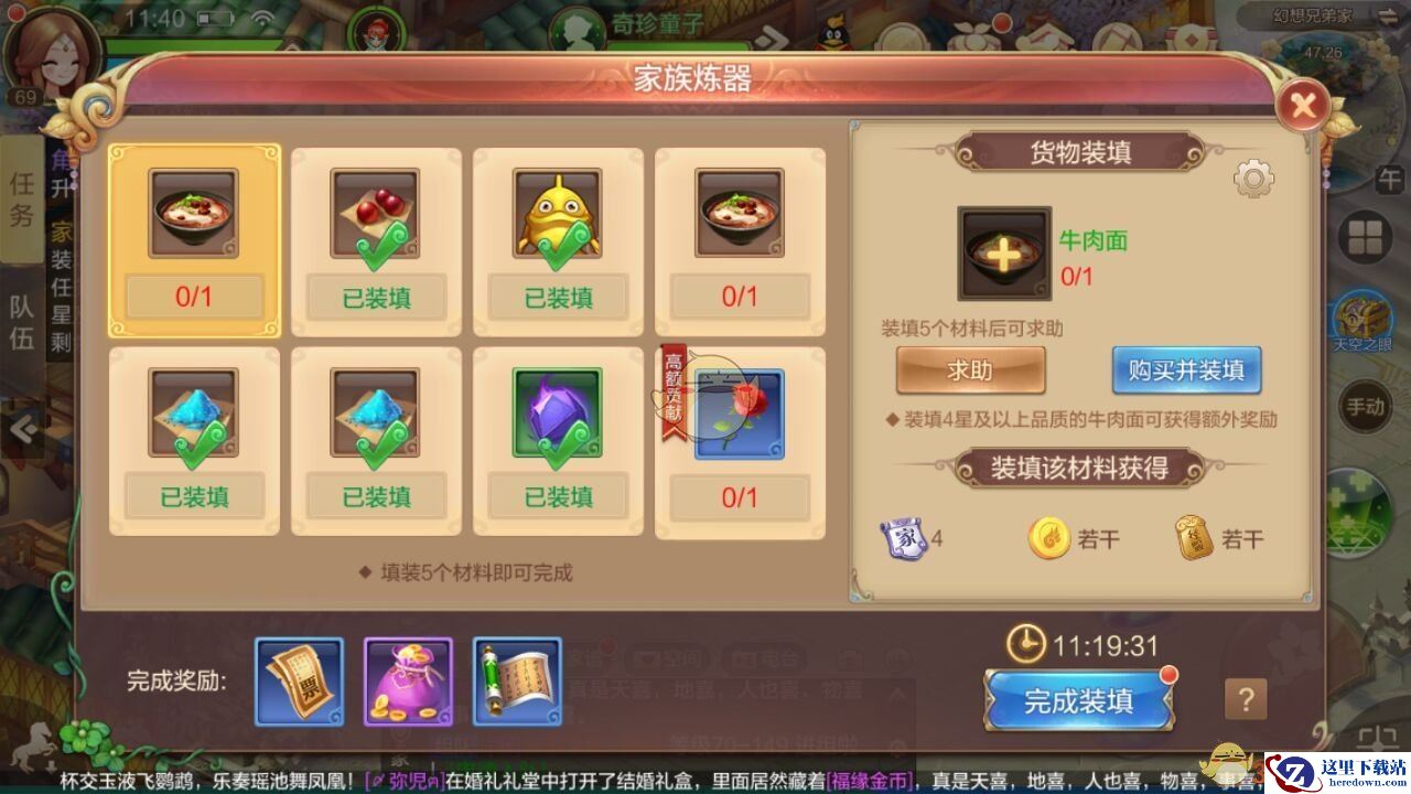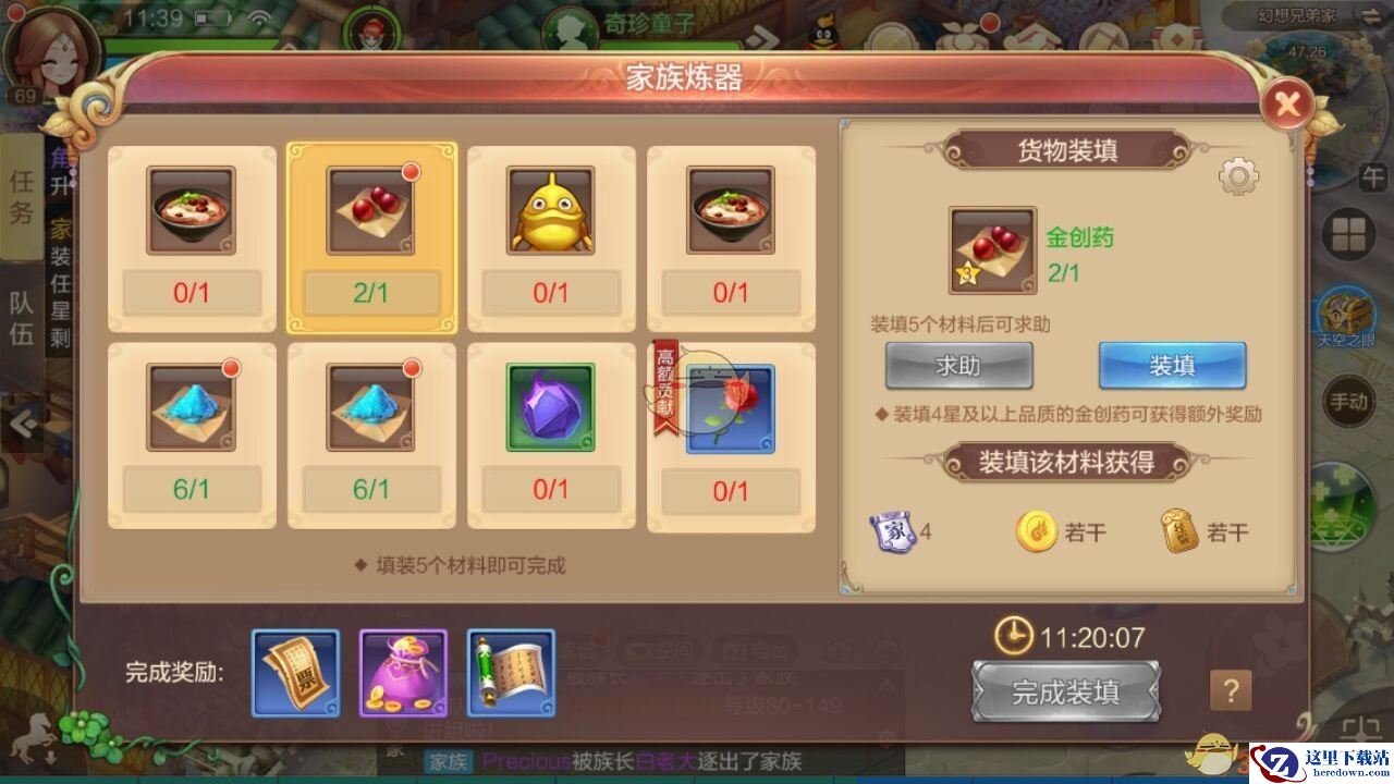 4)8件物品全部装填完成,就可以找到奇珍童子点击完成填装按钮完成任务,领取奖励 (如下图)。