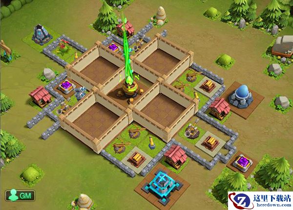 建议:相邻的围栏可以连接在一起,围栏可以选择性的保护一些重点建筑。具有较大攻击范围的防御武器更加适合放置于围栏里。