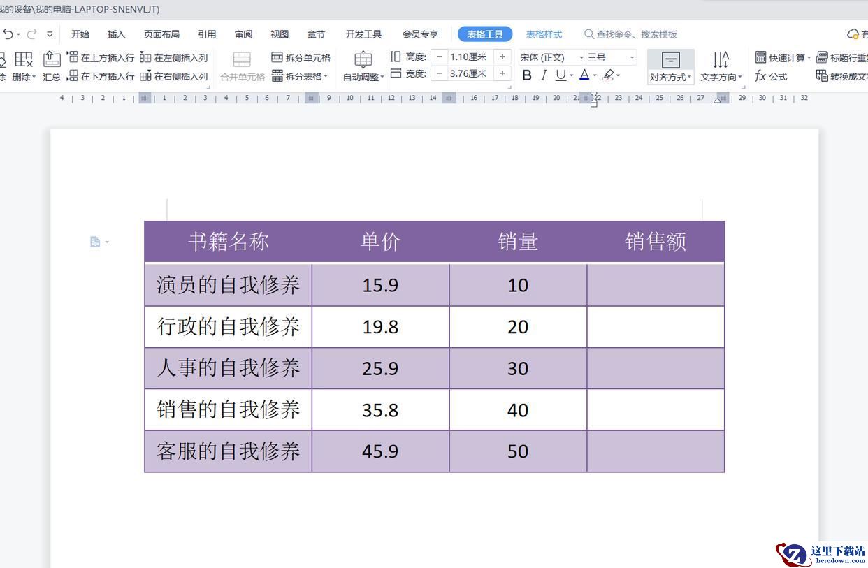 下图所示的WPS文字文档表格中,第2列是单价,第3列是销量,我们接下来要做的就是在第4列求取销售额,销售额的计算方式等于单价乘以销量。