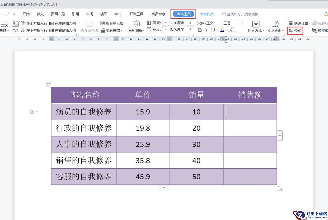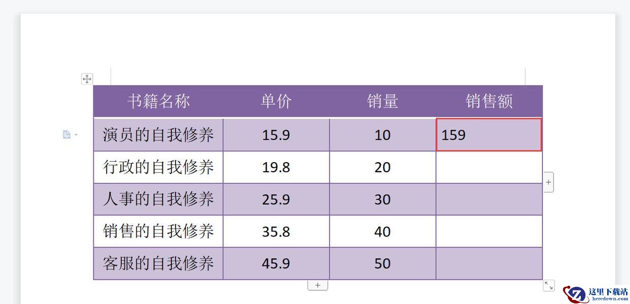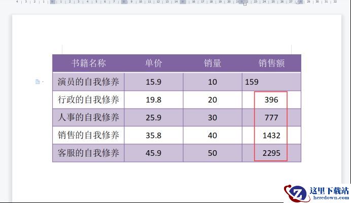 3、返回文档,可以看到第2行中的销售额已经计算出来了。