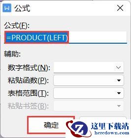 2、在弹出的【公式】对话框中,将公式编辑框中默认的“=SUM(LEFT)”修改为“=PRODUCT(LEFT)”,单击【确定】按钮。