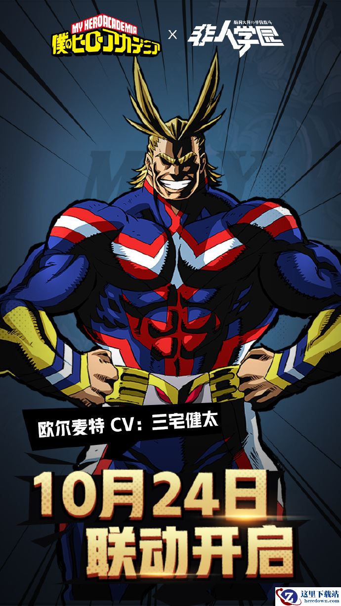 《非人学园》中与英雄学园联动日期终于确认了,官方已经确认小英雄联动版本正式定档日期为10月24日,而且官方还放出了一些欧尔麦特的动作以及战斗形态了,下面就来看看吧。