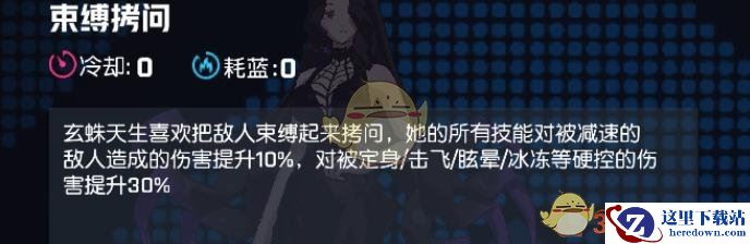 寻蛛天生喜欢把敌人束缚起来拷问,她的所有技能对减速的敌人造成的伤害提升10%,对被定身/击飞/眩晕/冰冻等硬控的伤害提升30%。