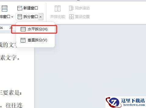 3.在弹出来的下拉选项卡中,用户选择其中的水平拆分选项来解决问题