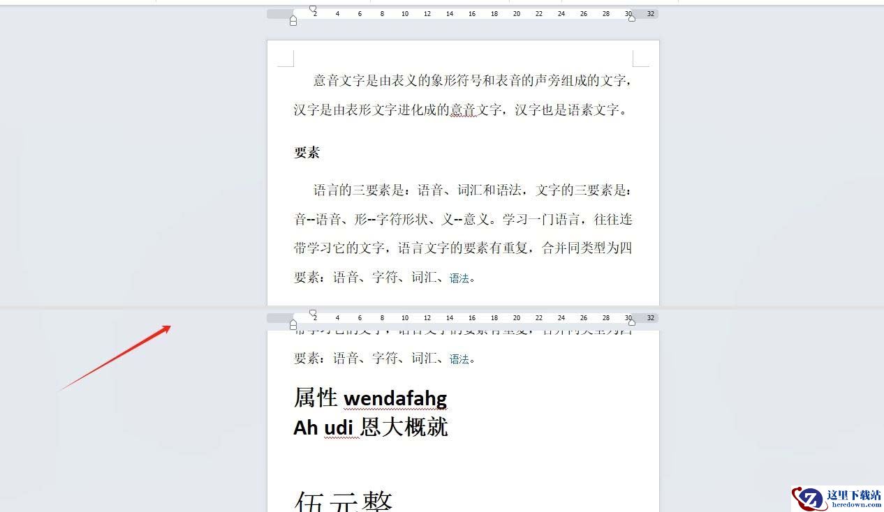 4.如图所示,用户会发现当前页面中文档内容成功分成了上下两截,还可以随意滚动上下内容