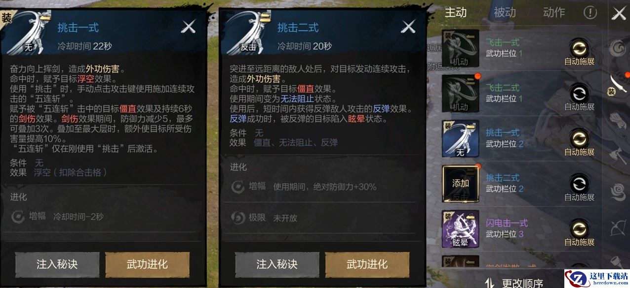 1.对全职业的武功技能进行了大幅的修改,在各职业的每个主动武功处都额外新增二式或三式可以选择,随心搭配自有技能体系,千人千面打造自有战斗流派!