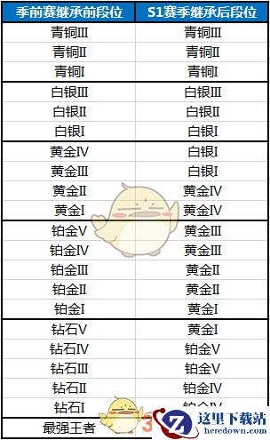 2)新旧赛季段位继承关系如下(仅供S1赛季参考):