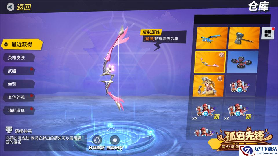 1月30日,全新礼包“樱雨残心”送至《孤岛先锋》战场,开放正式购买渠道。玩家开启樱雨残心礼包即有机会获得密林游侠传奇皮肤“樱雨残心”,化身东瀛女忍者;专属武器皮肤“落樱神弓”灿烂演示樱花之美;此外还有机会获得七海霸主传奇皮肤“黑金大亨”、专属武器皮肤“教父球棍”及其他丰厚皮肤奖励,让节后新装靓丽出众。玩家也可以通过开启首款“樱雨残心”捆绑礼包,直接获得樱雨残心、落樱神弓两款皮肤。