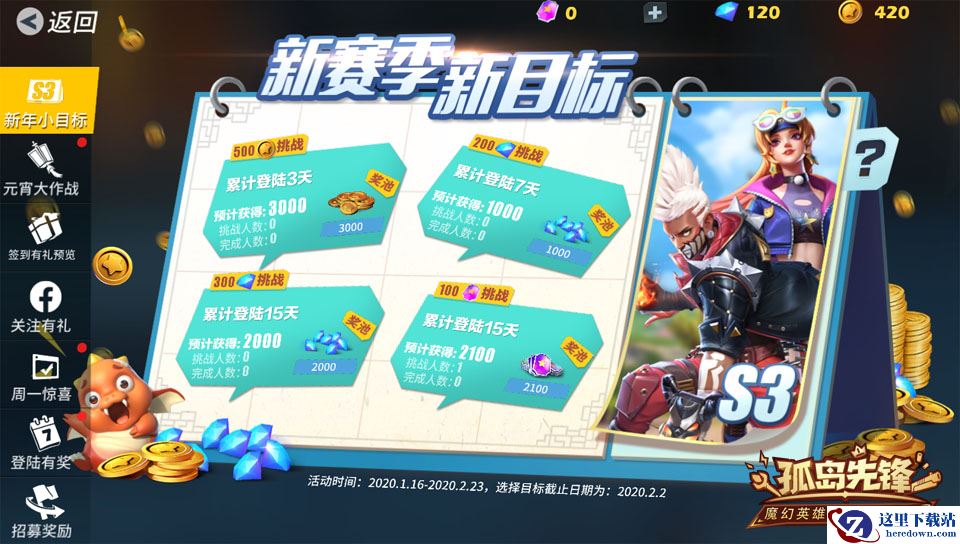 浓厚的新春氛围中也不要忘记S3赛季本周正式开启!本周更新后赛季新功能“新年小目标”全新上线,玩家可以自由选择3个新赛季目标,完成目标中的各项任务即可在活动结束时获得对应奖励并平分奖池奖金。