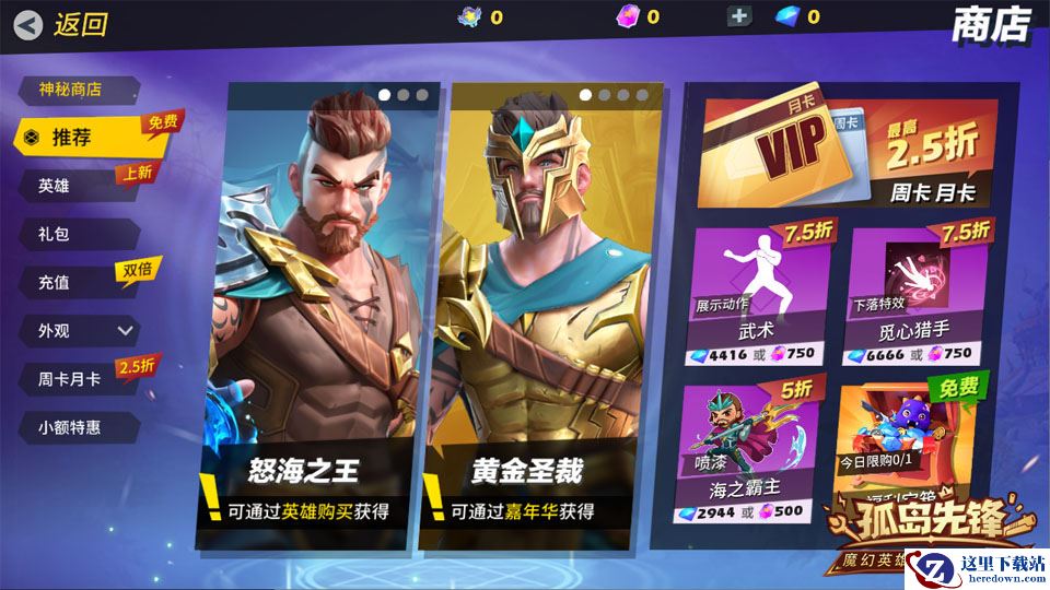 随着本次更新的到来,怒海之王嘉年华也将火热启动,玩家在专题界面中将有抽取获得英雄“怒海之王”以及两款高级皮肤“黄金圣裁”和“魔化之水”,专属武器皮肤“凌波海皇戟”等丰厚奖励。