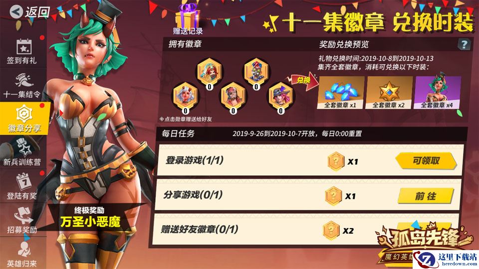 值此国庆佳节即将到来之际,《孤岛先锋》也为玩家准备了多重节日惊喜。9月26日更新后至10月20日,玩家每日分享游戏都可以获得分享次数,次数可用于获取战星、喷漆、赛季抽奖券、英雄皮肤体验券以及永久英雄皮肤等奖励。