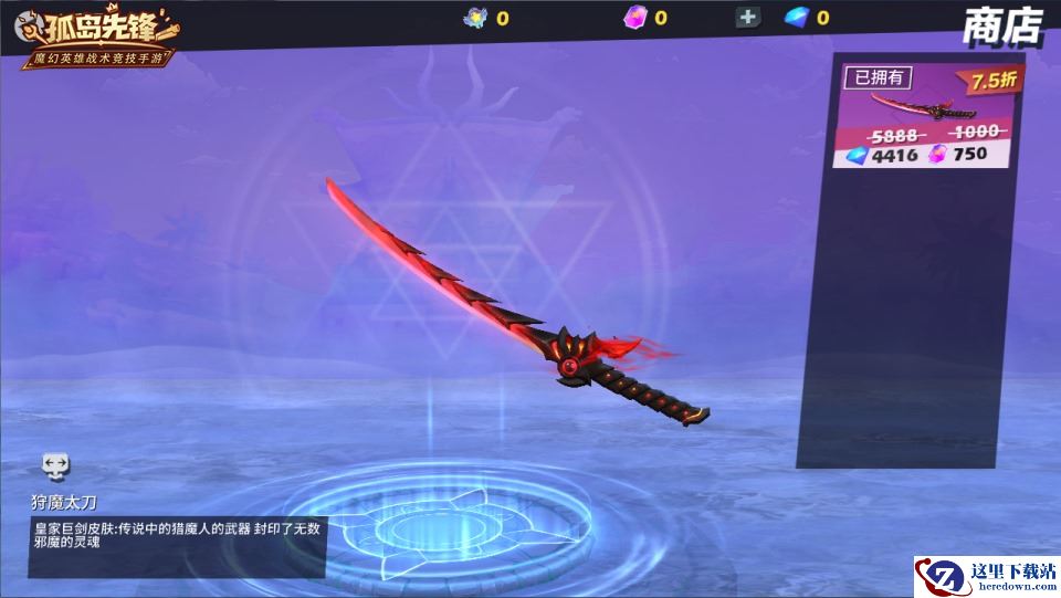 皇家巨剑在游戏中以霸气犀利而闻名,它的专属皮肤“狩魔太刀”则在此基础上又融入了刀锋式凌厉气息。刀身遍体通红既体现了“狩魔”的主题,又像是在展现它立下的战绩。