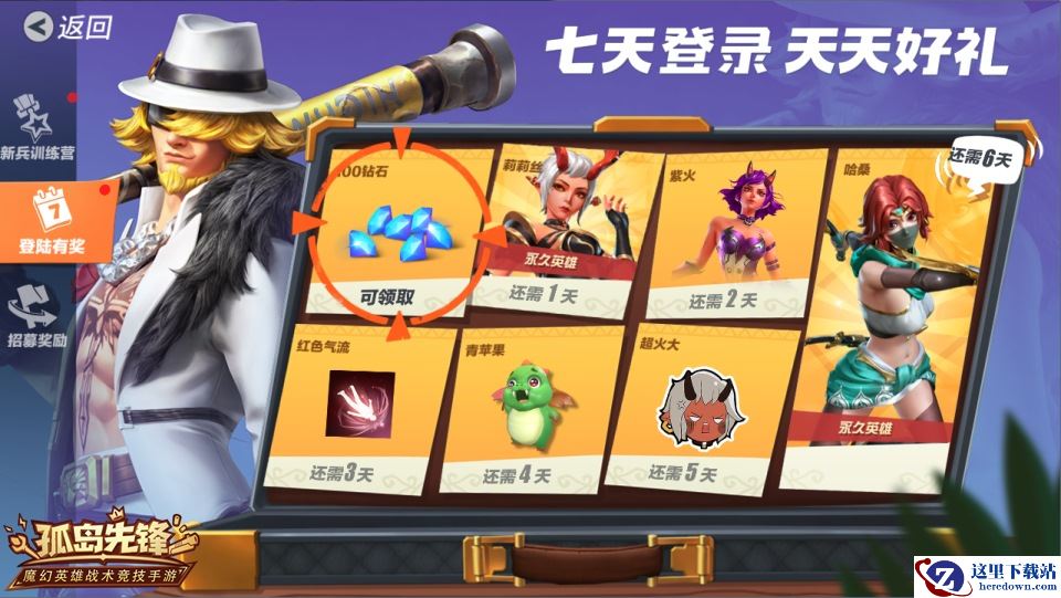 登录就有礼,累计七天即可将两大英雄,酷炫皮肤,下落特效等奖励带回家;全新英雄惊喜上架,赏金猎手怀特?厄普霸气亮相,双枪在手纵横试炼场;招募好友赢取绝版时装,七海霸主变身圣殿骑士团守卫正义;转动转盘欢度嘉年华,前4抽必得永久英雄“赏金猎人”,抽取12次即可获取所有奖励;月度首充任意金额即送绝版坐骑“沙漠迅猛龙”,充值达指定金额还可获赠高级武器皮肤及高级时装;赛季宝箱奖励疯狂升级,新人前3抽必得紫色时装,前2次十连抽必得橙色时装!神秘商店限期开业,利用宝石即可兑换传奇外观,展现最酷炫的你!