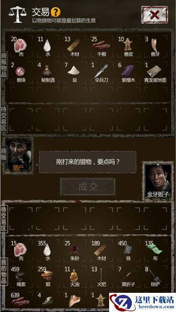 与主流游戏中的交易系统不一样,《长生劫》中的交易可谓是颇具特色。区别于货币交易物品的模式,在主角吕烽所在的封闭小村落里,大家崇尚的是更为原始的物物交换。而这也代表着,交易的双方没有商客之分,或者说每个人都是商。那么,自然是“无奸不成商”啊!