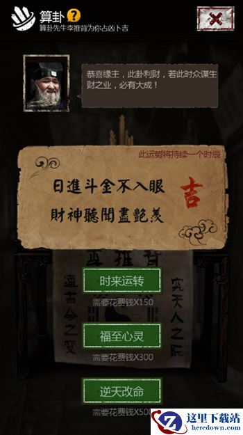 《长生劫》中还有一个比较有趣的玩法,就是算卦。玩家可以花费少部分金钱,下墓之前在这里算上一卦。如果是上上签,吉上吉,那自然是大好兆头,宜下墓!这个时候就会获得有益的增幅,帮助玩家更好地墓下探险。但是天有不测之风云,如果遇上凶签怎么办?虽然,游戏中提供了让大家“破财挡灾”的方式,但是,事情当然没有那么简单了。