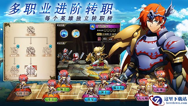 英雄转职一直是《梦幻模拟战》系列游戏的最大特色,手游版更是不遑多让。数十种的专属转职路线,组合出队伍的无限种可能性。就像2代男主角艾尔文,既可以成为守城无敌,为其它英雄提供强大支援的大元帅;也可以转职成一骑当千,冲在团队最前线的骑士长;还可以化为剑术无双,信仰光辉之力的英雄。不同的职业选择没有强弱之分,可谓各具特色,玩家只需要根据队伍整体配置以及敌人的属性灵活转职,就可以发挥最大的战力。