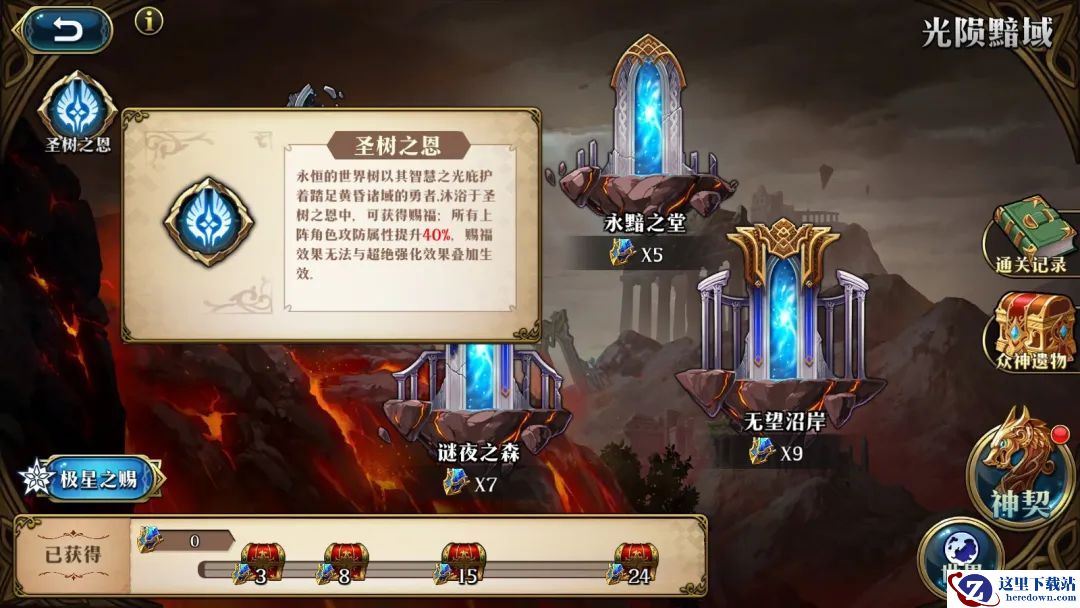 相信已经有很多指挥官注意到了左上角的“圣树之恩”,其赐福效果将对光陨黯域的所有上阵英雄生效~