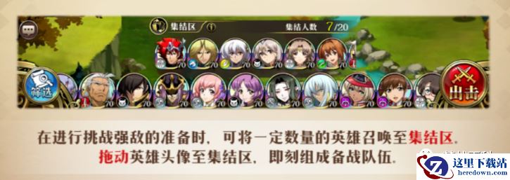 集结区的英雄无论是否上场,下一关都不能再上了,假设每场战斗上5+3个人,四个子关就是32个英雄,新手望而却步,呵呵~