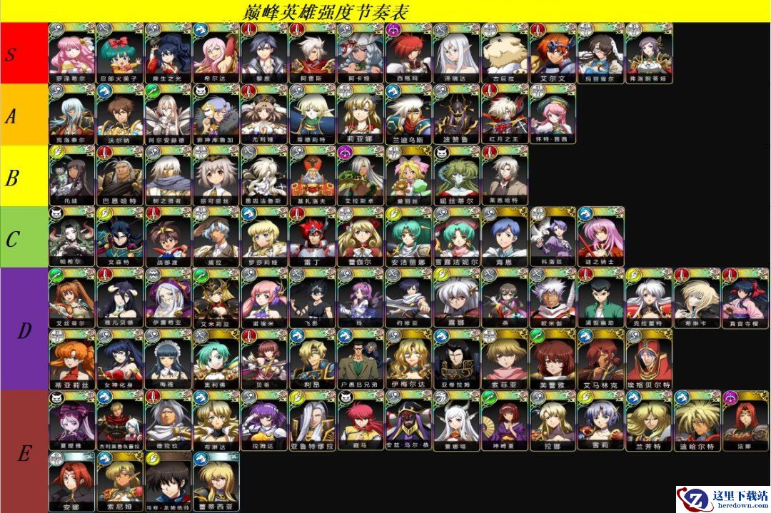 ssr英雄排行榜2021如上图所示,按照强度分为S、A、B、C、D、E梯度来排行。