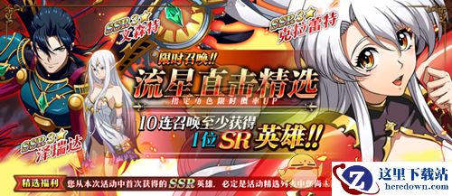 限时召唤「流星直击精选」中SSR级英雄文森特、泽瑞达、克拉蕾特出现概率提升!