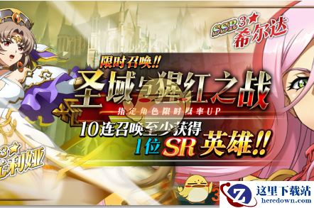 限时召唤「圣域与猩红之战」中SSR级英雄尤利娅、希尔达出现概率提升!