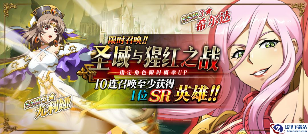 限时召唤「圣域与猩红之战」中SSR级英雄尤利娅、希尔达出现概率提升!