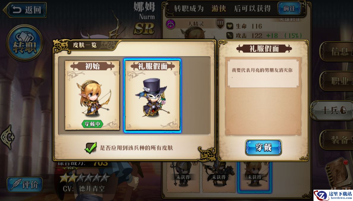 3)英雄皮肤有适用职业,当英雄转职的职业为皮肤适用职业时,可以穿戴皮肤